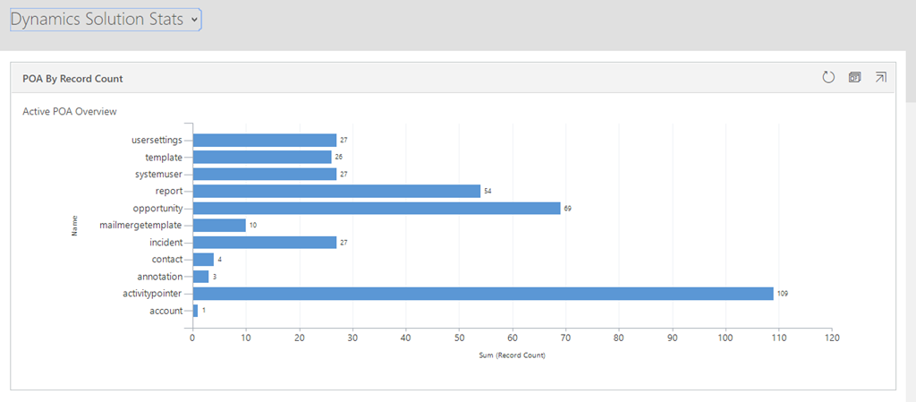 This is a dashboard in Dynamics that presents some basics stats about the PrincipalObjectAccess table. In order to get that dashboard, you’ll need to do a few things: