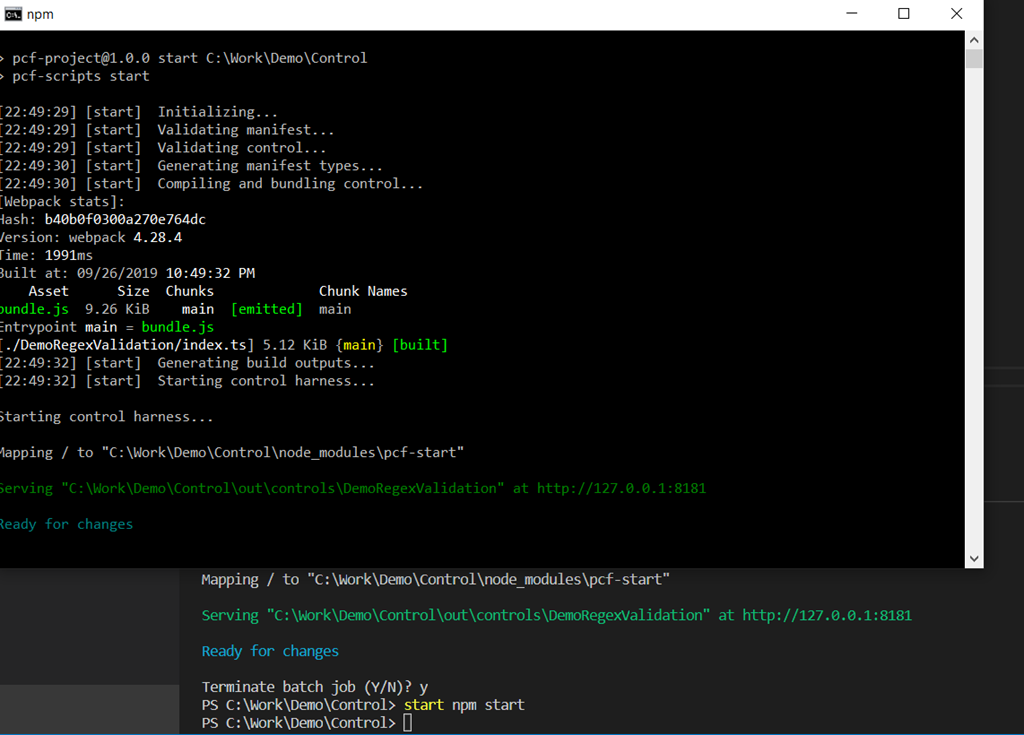 Test harness for PCF controls – we can also use “start npm start”