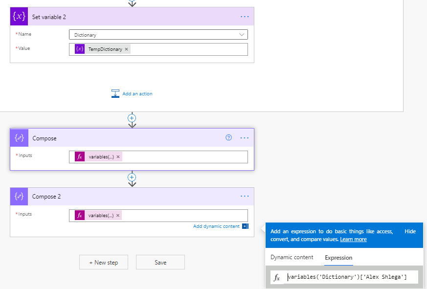 I was toying with the idea of creating a dictionary variable in Power Automate, and, it seems, I got onto something. Unless there is an easier way?